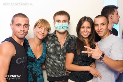 Но перед тем как войти в очередной казанский ночной клуб, я надеваю специальную стерильную маску с надписью «не курю». Реакция людей в основном на человека в «маске» в основном положительная, многие начинают интересоваться: а почему не курите? да в чем дело — да еще в повязке!? Я в вкратце объясняю о том, что такое — так называемое пассивное курение и почему я нахожусь в клубе в этой маске, о том какой процент пьяниц, алкоголиков, курильщиков, наркоманов и токсикоманов у нас в стране… у людей действительно появляется интерес изменить свой образ жизни, полностью поменять себя. Ну и видимо парень с повязкой «НЕ КУРЮ» так же вызывает интерес у фотографов, поэтому практически каждую неделю нахожу свои фотографии на различных клубных сайтов города Казани (фотографии присылаю вам).
