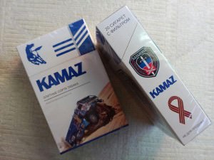 Сегодня мы поговорим не о грузовом автомобиле отечественного производства, а о сигаретах лимитированной серии. Производятся в России, на пачке изображён Камаз. Сделано специально в поддержку ополчения в Украине. Завозятся на Донбасс как гуманитарная помощь.
