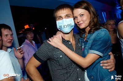 Но перед тем как войти в очередной казанский ночной клуб, я надеваю специальную стерильную маску с надписью «не курю». Реакция людей в основном на человека в «маске» в основном положительная, многие начинают интересоваться: а почему не курите? да в чем дело — да еще в повязке!? Я в вкратце объясняю о том, что такое — так называемое пассивное курение и почему я нахожусь в клубе в этой маске, о том какой процент пьяниц, алкоголиков, курильщиков, наркоманов и токсикоманов у нас в стране… у людей действительно появляется интерес изменить свой образ жизни, полностью поменять себя. Ну и видимо парень с повязкой «НЕ КУРЮ» так же вызывает интерес у фотографов, поэтому практически каждую неделю нахожу свои фотографии на различных клубных сайтов города Казани (фотографии присылаю вам).