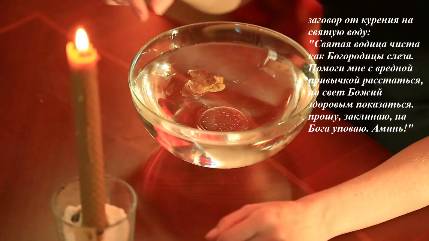 Чтение заговора от курения на воду является одним из самых сложных. Однако результат, полученный после проведения непростого обряда, стоит приложенных усилий. Читать заговор от курения самому себе следует в понедельник или четверг, в полночь.