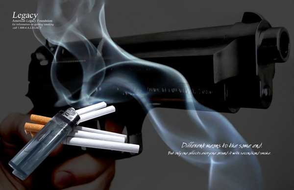 Что предпочитают видеть люди, и когда плакаты против курения могут оказать эффект? Хорошо действуют на сознание и на факторы запоминания изображения людей, бытовых сцен без детального фона. Неплохой вариант — оружие или нечто, имеющее для большинства значение неприятного, вредоносного предмета.