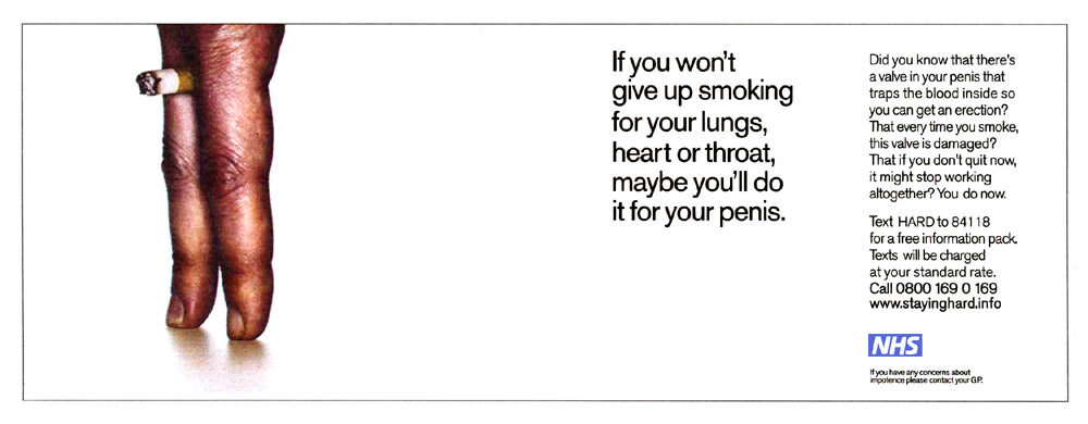 Текст: Если вы не хотите бросить курить ради ваших легких, сердца или горла, может быть вы сделаете это ради своего пениса.